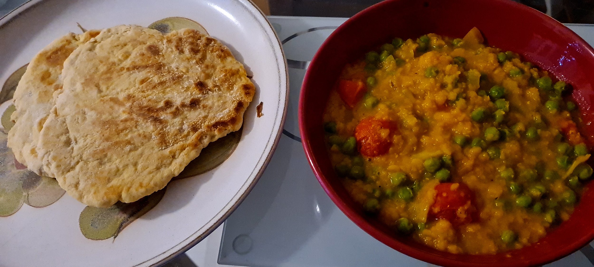 Chapattis: (no video) (photo showing chapatti being served with Tarka Dhal)