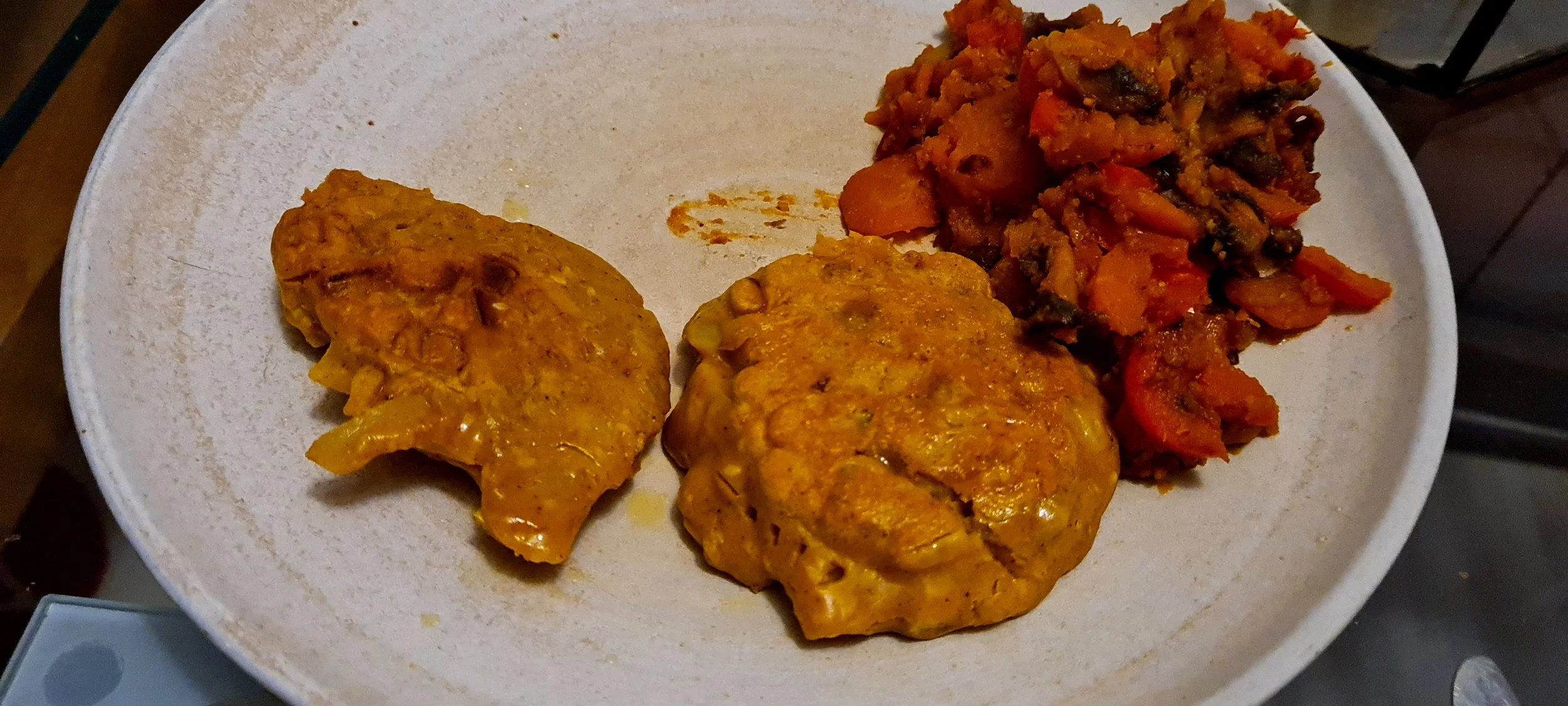 when sweet potatoes and carrot are cooked add to mixture in frying pan and stir through thoroughly.